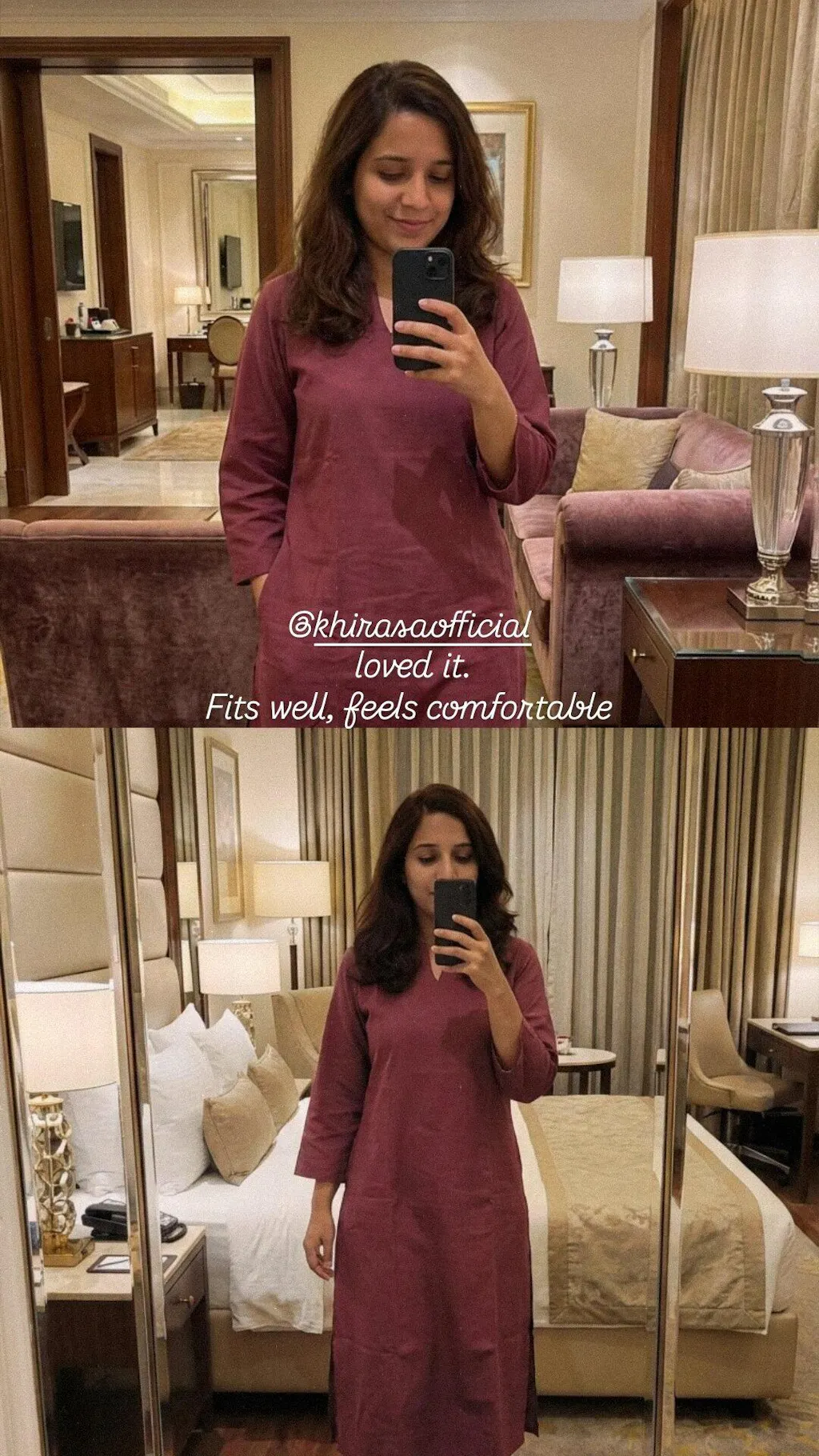 Step into effortless elegance with this Mauve V-Neck Kurta paired with a breezy palazzo. The soft mauve tone paired with a flattering V-neckline creates a clean, modern silhouette perfect for everyday wear.